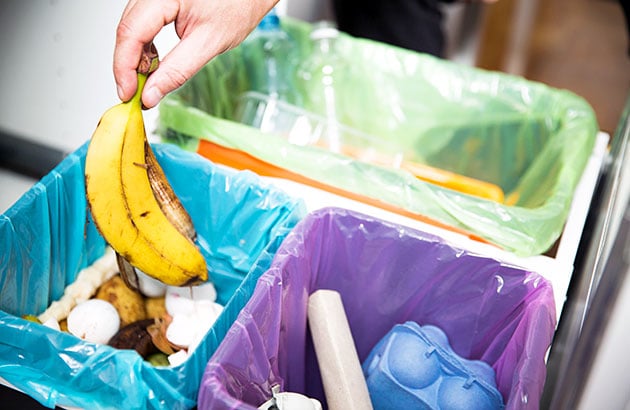 - Use a compost bin for food waste and help reduce methane emissions from landfills. Dispose of fruit and vegetable scraps, coffee grounds, loose leaf tea, cooked pasta and rice, and more. It will also give you free fertilizer for your plants and garden.