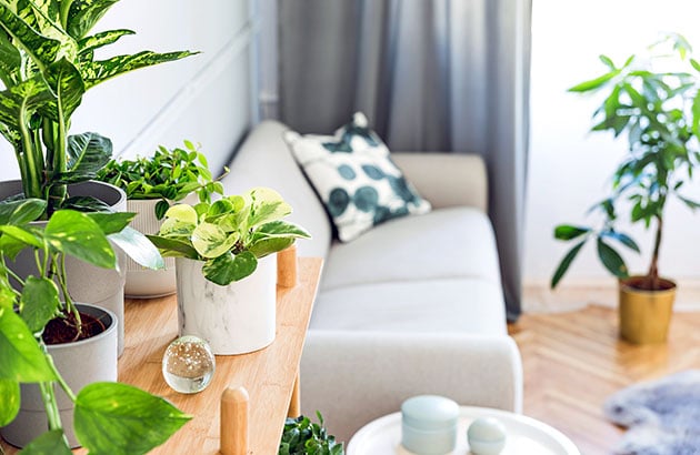 Not only are house plants aesthetically pleasing, but adding plants to your home is a wonderful way to improve air quality. Plants perform photosynthesis, through the removal of carbon dioxide in the air, transforming it into oxygen. Some house plants can reduce other pollutants in the air, such as benzene, formaldehyde, and mercury, which can cause health problems like dizziness, headaches, and eye irritation.