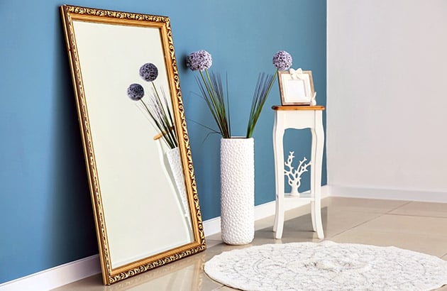 - Expand Space with Mirrors: When seeking to balance energy throughout your home, thoughtfully placed mirrors can create an illusion of more space and add a bright, airy feeling to an otherwise confined space. This effect is perfect for smaller rooms and bathrooms. In addition, a mirror with colored glass can bring in the psychological effects of color, while adding the illusion of light and space to a room.