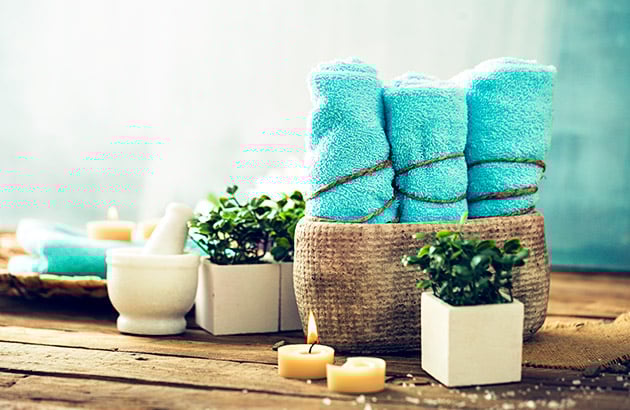 - Creating a Luxurious Oasis: Give the bathroom the feel of a relaxing, luxurious spa by stacking a few pretty washcloths tied with ribbon, adding some scented candles and faux plants, and buying bathmats and towels in coordinating tones such as light green, blue, and white.